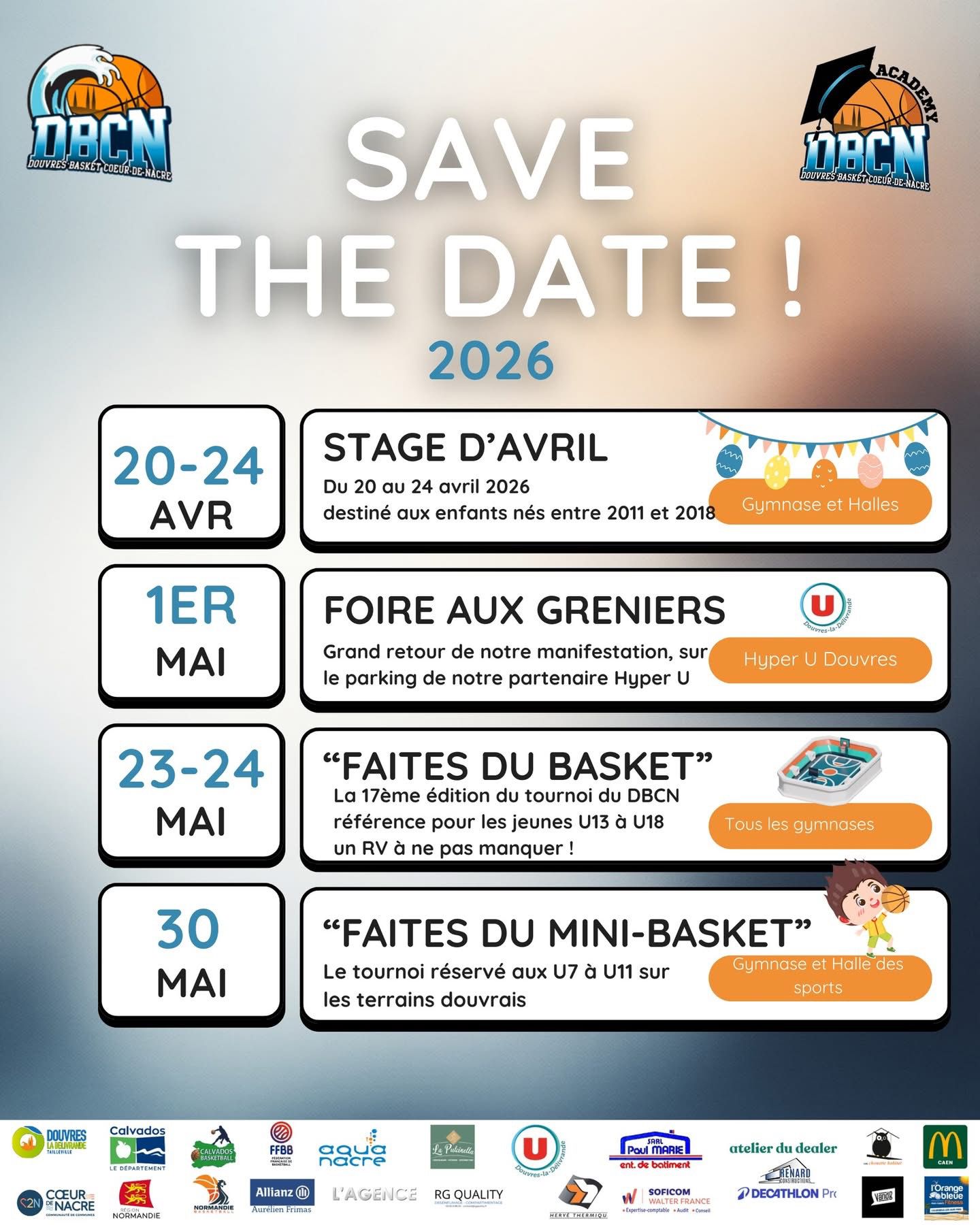 ✨ et les très attendus tournois de la "Faites du Basket" et "Faites du Mini-Basket", en mai ! Toutes les informations sur nos réseaux sociaux en 2026 : restez connectés !